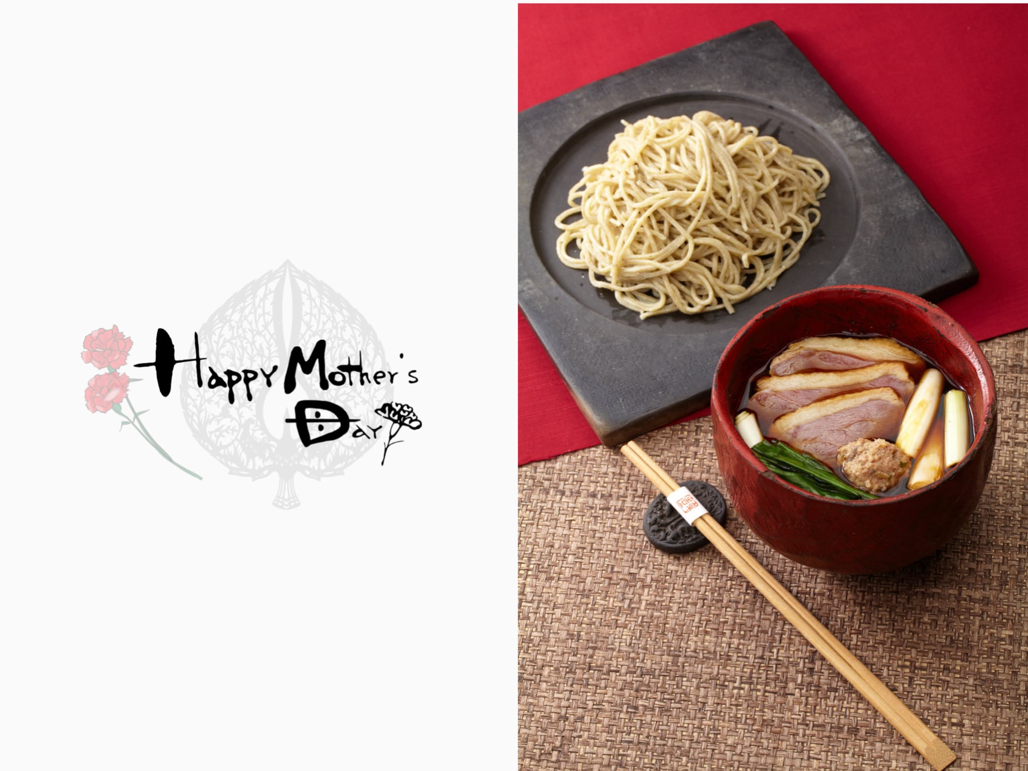 母の日限定ラッピングを施した鴨せいろそば4人前です。